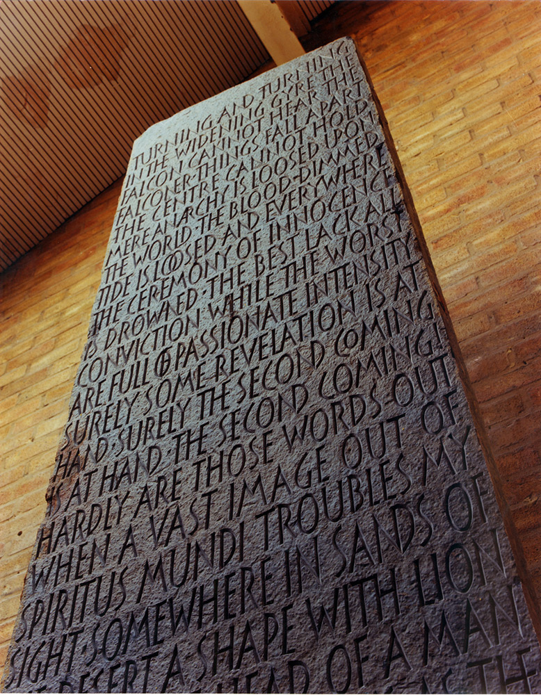 Inscriptions take many forms but in general the layout and lettering is more significant and expressive than the same message printed on paper. The permanence of the inscription, as opposed to the transitory nature of most printed matter, encourages a more thoughtful and profound approach to design and production. When something can last potentially many decades, or even hundreds of years, it is important to make it as beautiful, expressive and appropriate as possible. A successful inscription is a marriage between material, lettering layout, craft and the celebration of the author’s words.